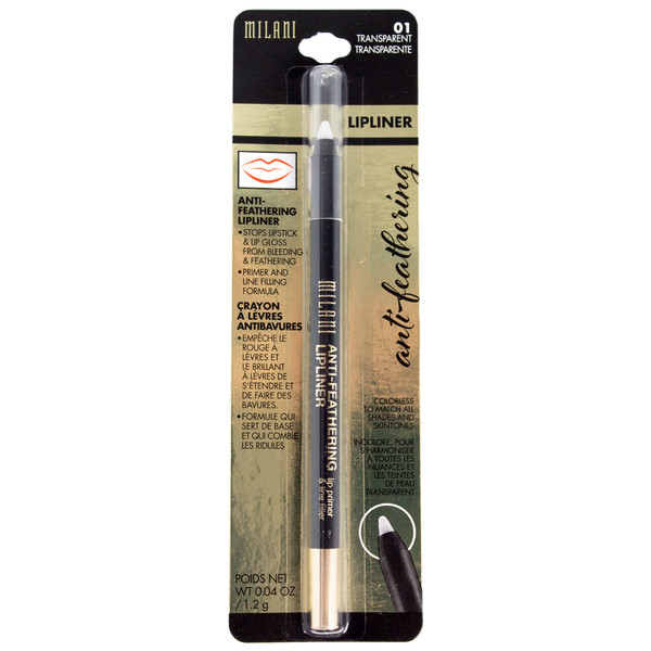 Milani Anti-Feathering Lip Liner is the perfect must-have companion to pair with your favorite lipstick. This anti-feathering liner will stop lip color from both bleeding and feathering. The formula acts like a primer and it's colorless so it will match all shades and skin tones.